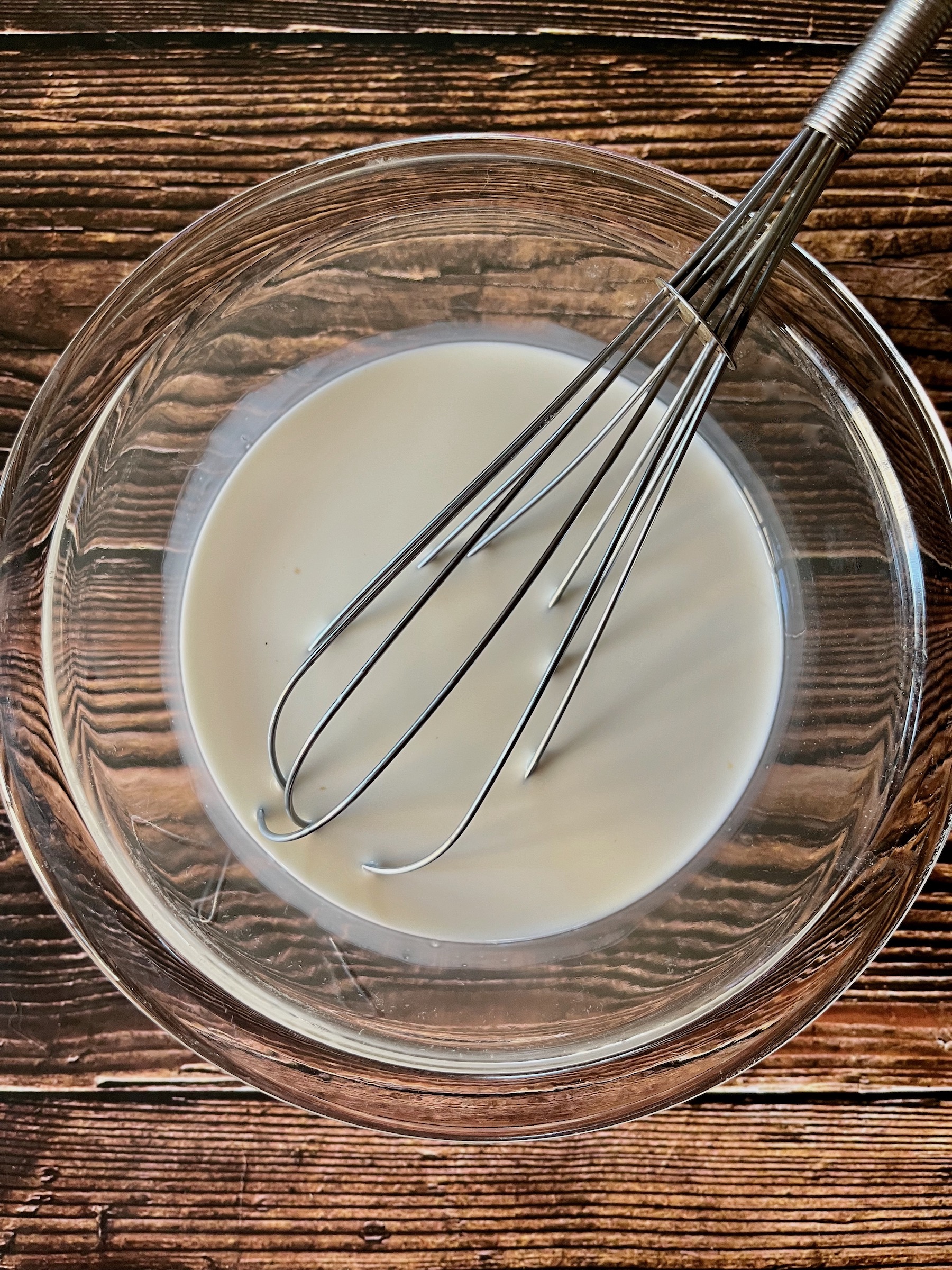 - Pour the half and half, sugar and vanilla extract into a small bowl, then whisk to combine.