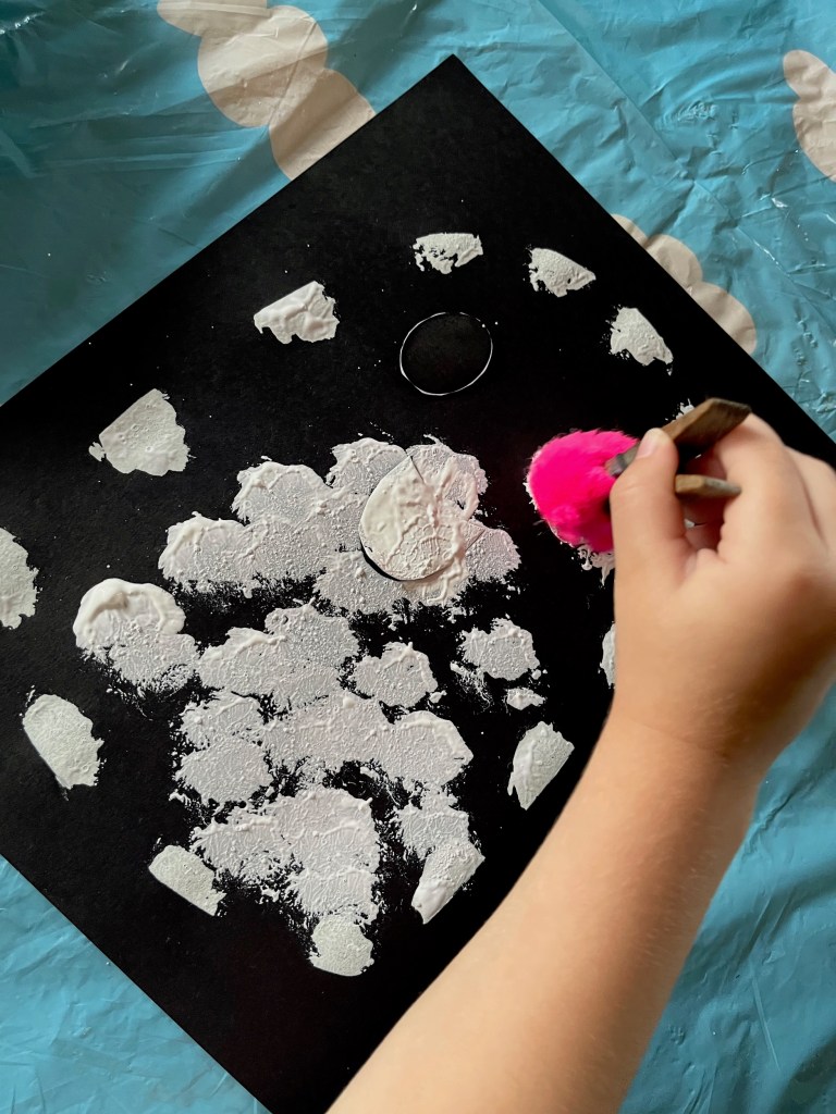 - Remove the frame and allow your little one to dab the paint away to their heart’s content.