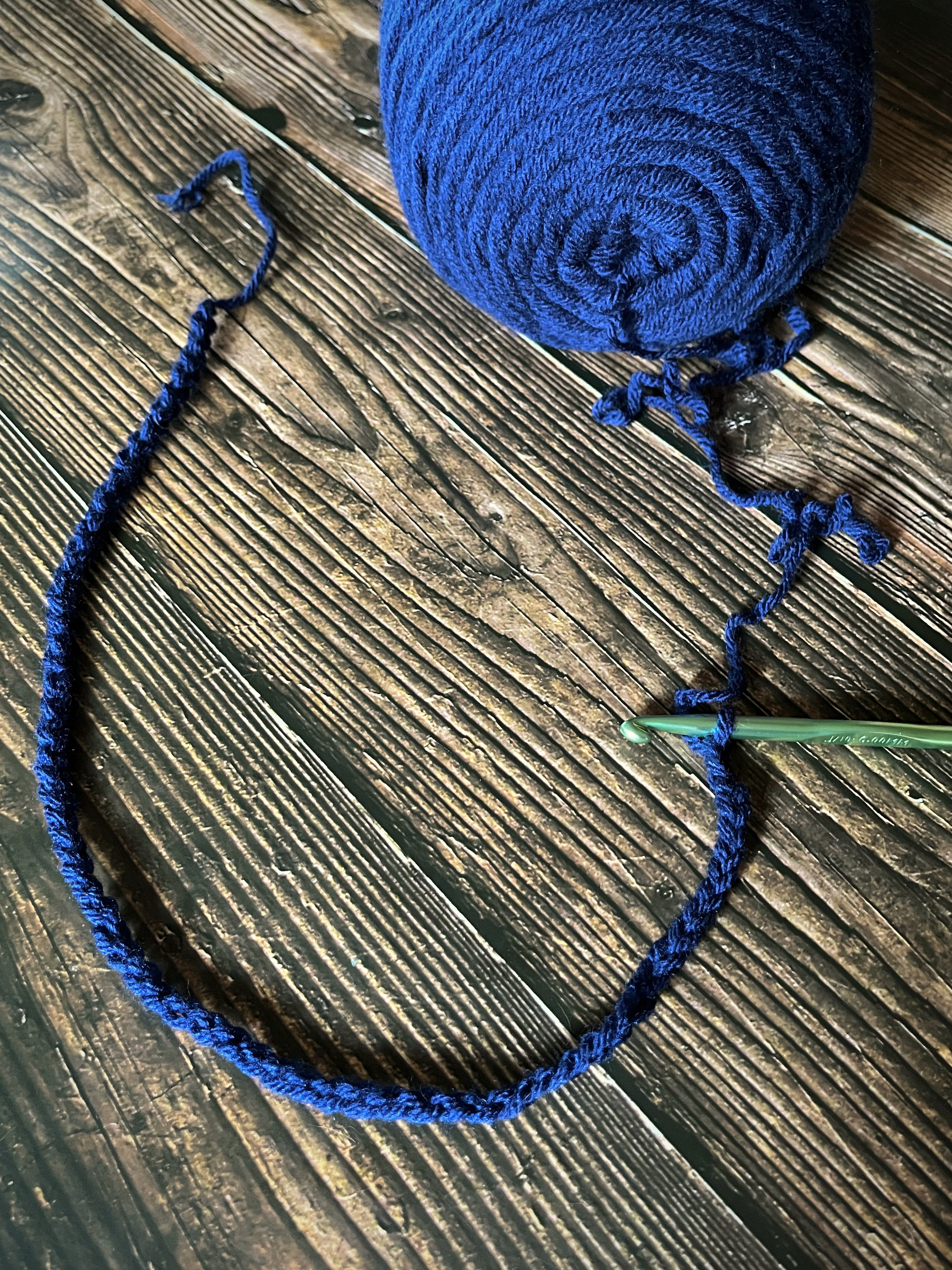 1. Create a slip knot and then at least 60 chain stitches (you can chain a few more if you want to make the brim wider). I wanted a wider brim/slouchier hat so I chained 70.