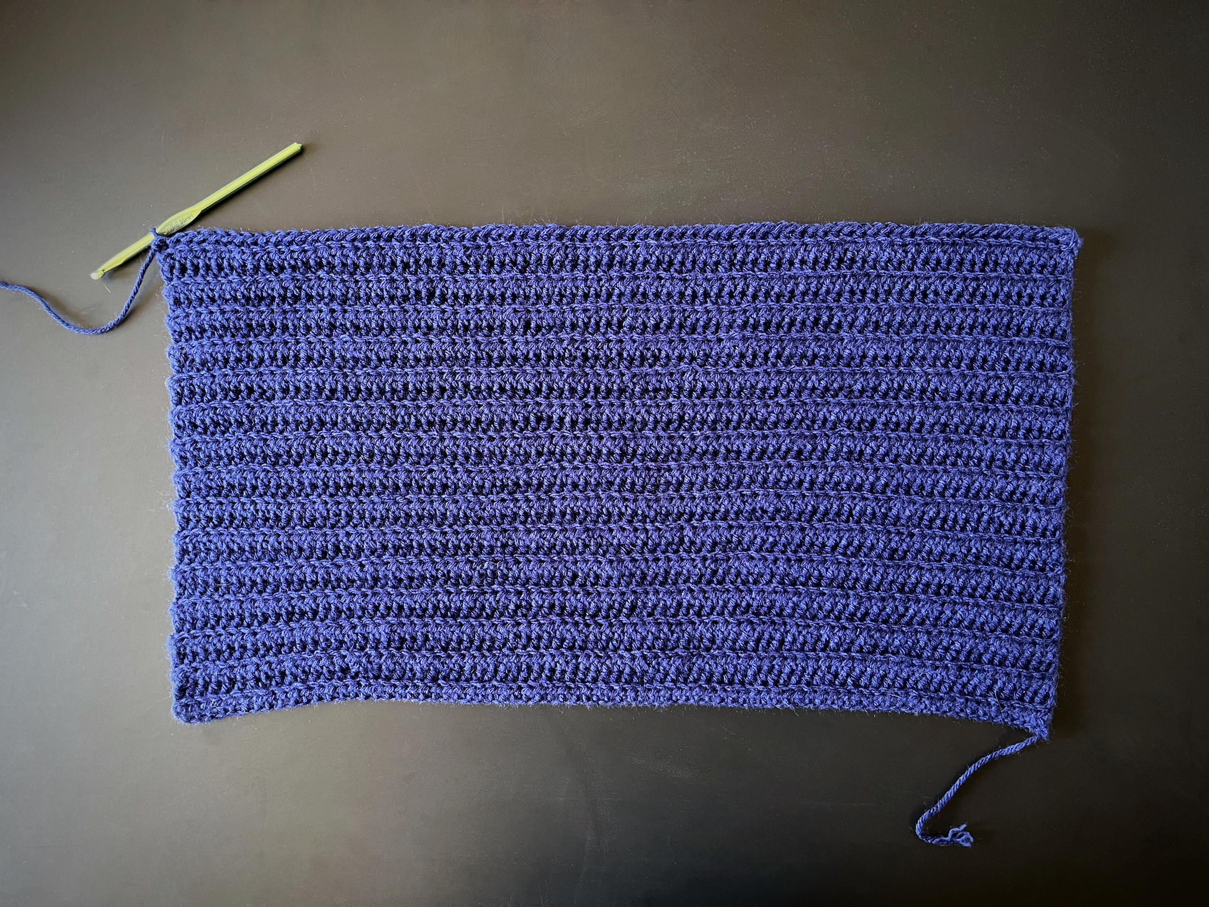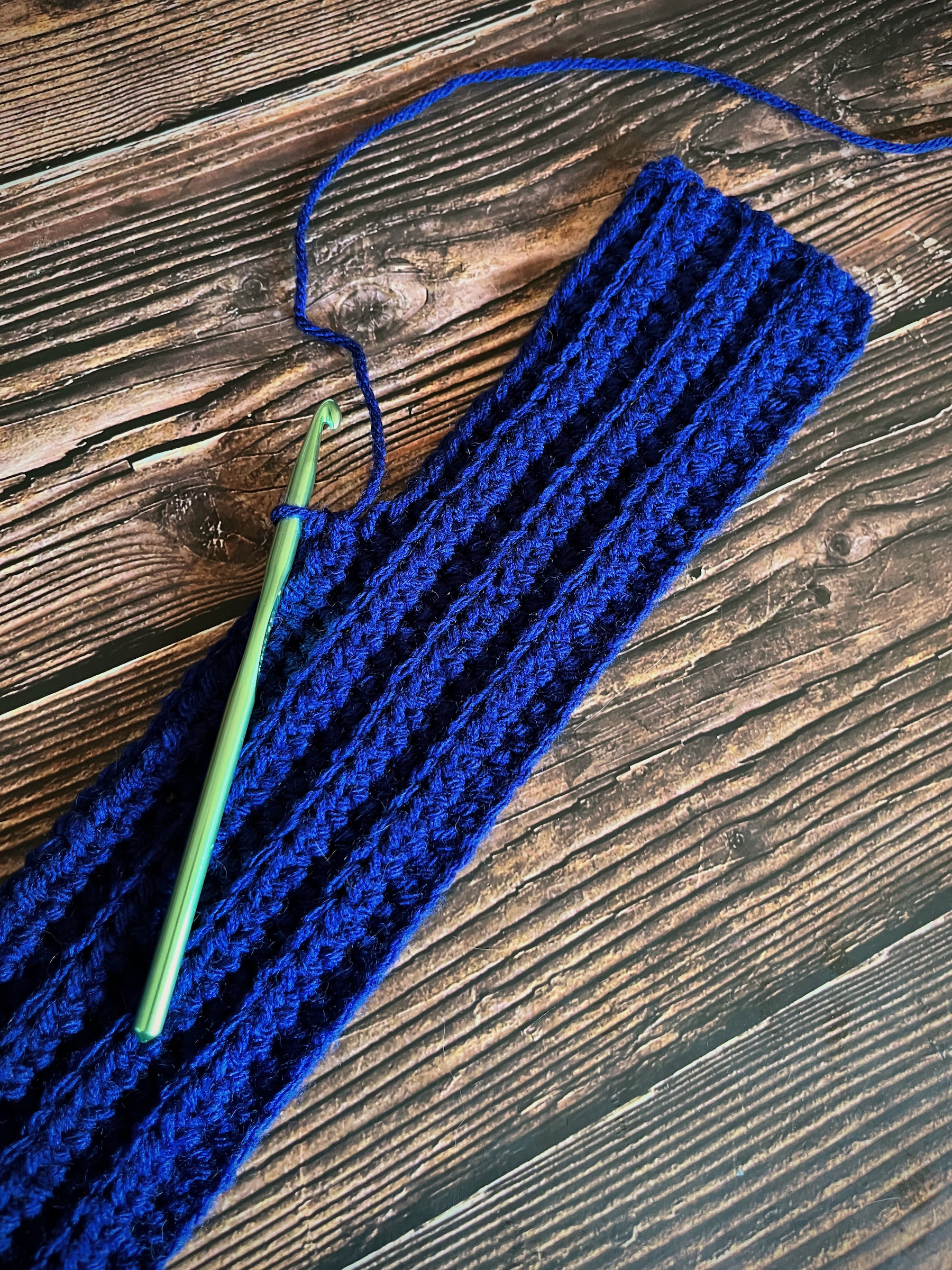 4. Repeat step 3 until there is a total of 28 to 30 hdc rows (the amount of rows can be adjusted so that the width of the project matches half of the circumference of your head).