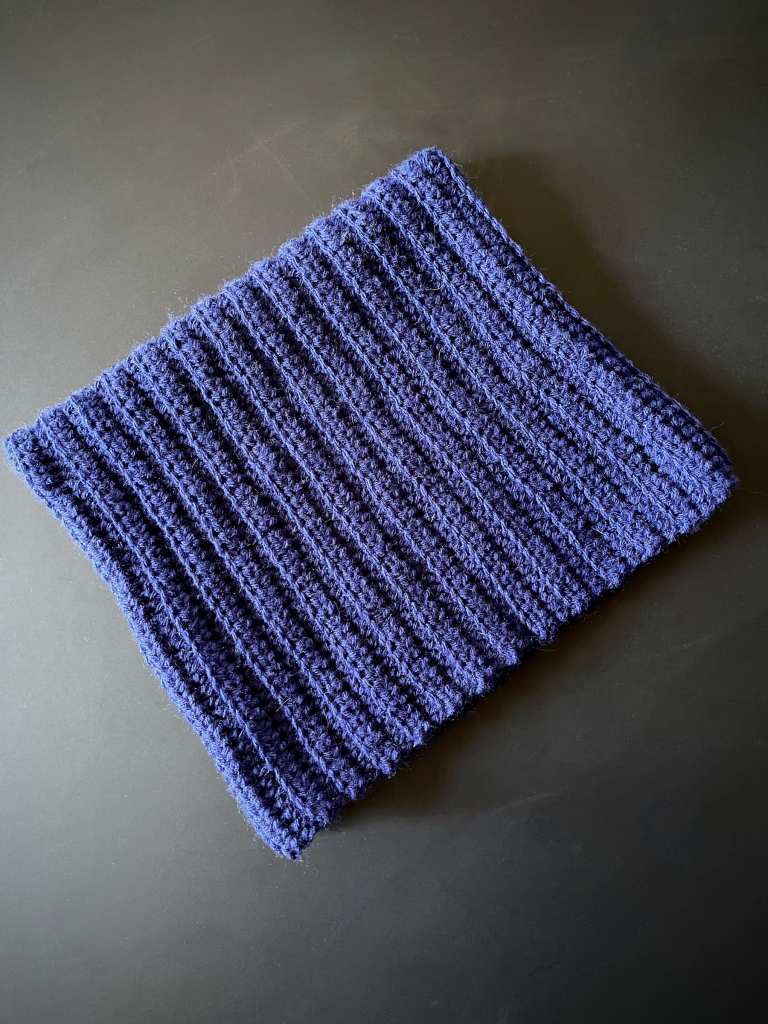 3. Chain 2 and turn your work. Hdc into the back loop of the third stitch from the hook, then continue to hdc in the back loops of each stitch all the way across your project.