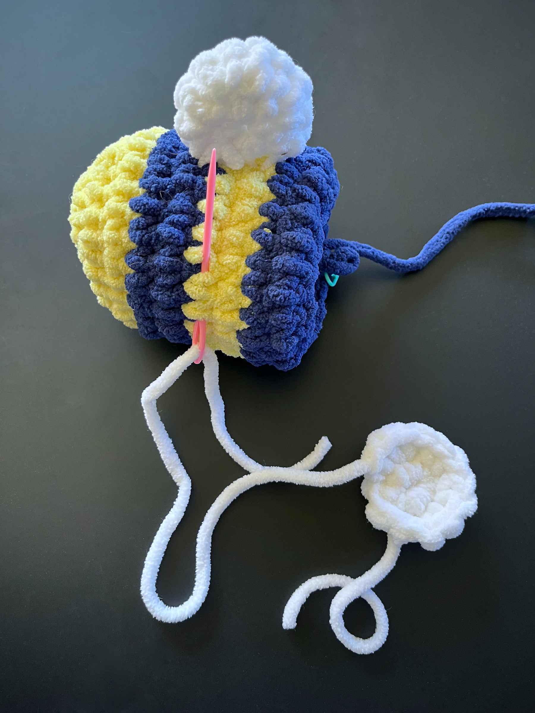 • If there is a tail from creating the magic ring, conceal it by stitching it into the wing and/or into the body of the bee.