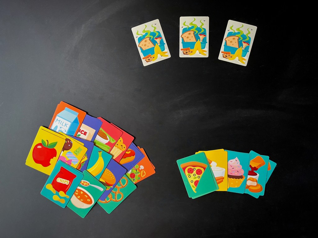 - When all the cards have been picked up (minus the stinky lunchbox cards if in play), each player counts the pairs of food they’ve collected. The player with the most food wins!