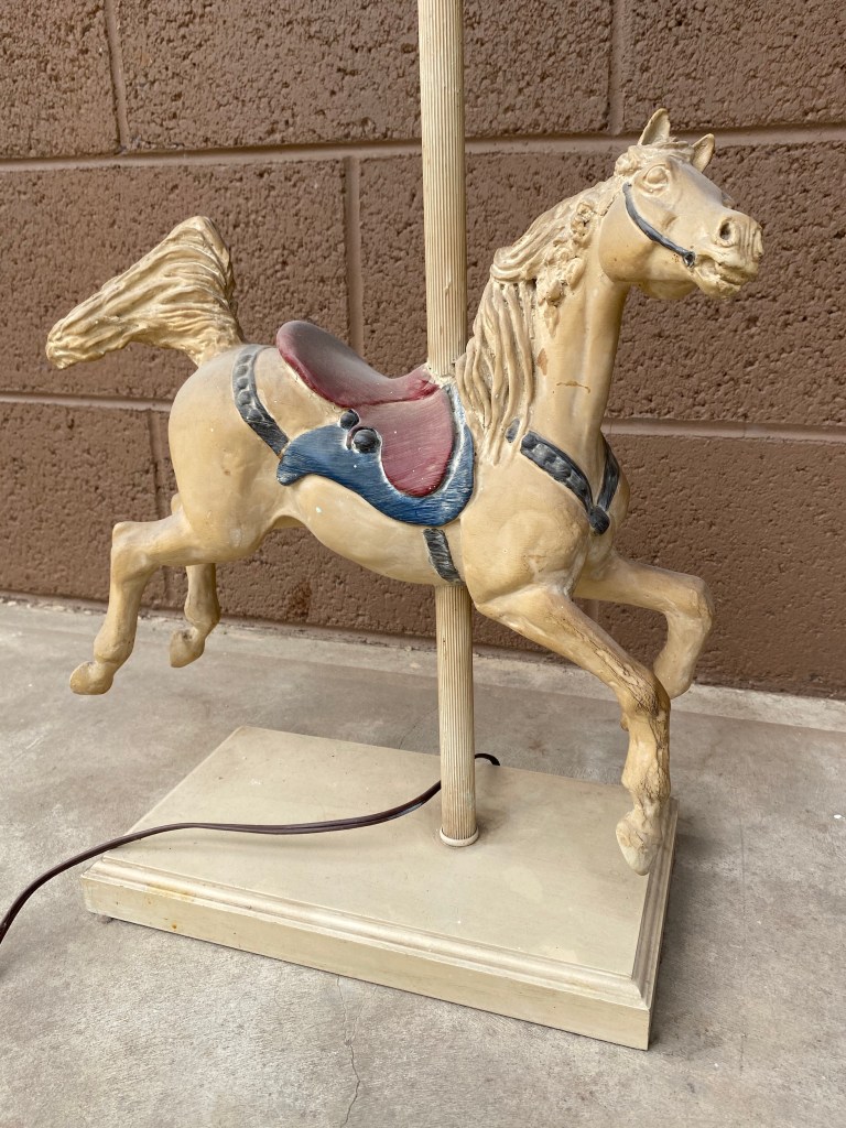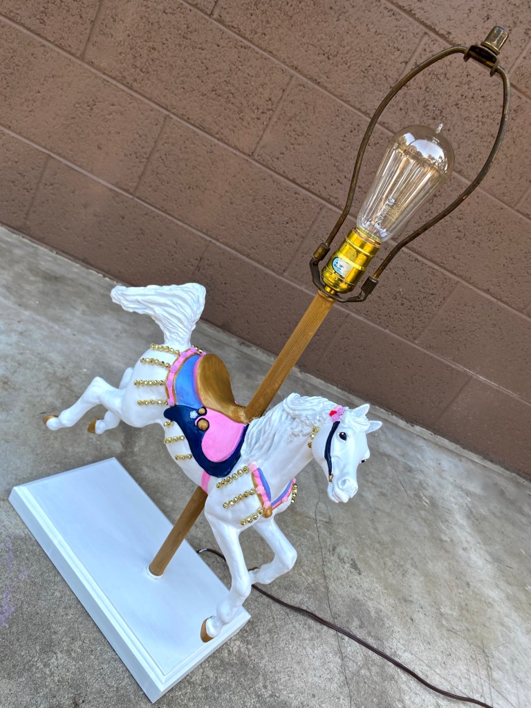 Now I know not many people have spare carousel horse lamps lying around, but you’re welcome to follow my instructions if you do, or if you have something else similar that you would like to repaint and/or retheme. Have fun with your imagination!